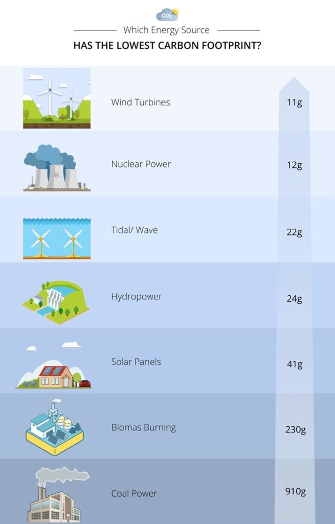 energías eólica y nuclear son las opciones con la menor huella de carbono entre todas